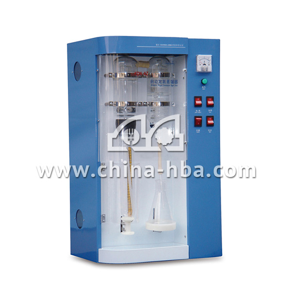 由定氮蒸餾器、定氮消化爐兩大部分組成的蛋白質測定儀,是根據經典的凱氏定氮原理研制生產的KDN-AZ定氮蒸餾器的特點是:采用不銹鋼電熱圈加熱,使自來水經過冷凝器、穩壓器進入蒸汽發生器產生連續穩定的蒸汽,對已消化的樣品進行蒸餾,將消化過程中產生的硫酸銨轉化為氨,并與硼酸反應生成硼酸氫銨,經滴定、計算得出樣品蛋白質含量。每個樣品經約七分鐘蒸餾即可完成。